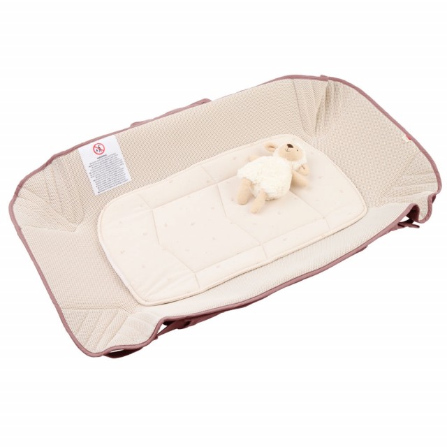 Voksi Carry Me er fullstendig dekket på innsiden med 3D-mesh for å sikre et pustende, komfortabelt og trygt sted for babyen din. En enkel, vaskbar madrass i økologisk bomull og 3D-mesh er inkludert og gjør dette til et mykt sted for babyen din å ligge. En innvendig fiberplate i polyester gjør produktet solid. Mens lignende produkter på markedet har ofte skum på innsiden, velger Voksi bevisst bort skum for å bidra til mer miljøvennlige alternativer. Utsiden er laget av resirkulert polyester, og bunnen har en beskyttende overflate som kan tørkes av for å holde den ren i hverdagen. Toppdekselet er vind- og vannavstøtende og gir ekstra beskyttelse, som enkelt kan tas av med glidelås.